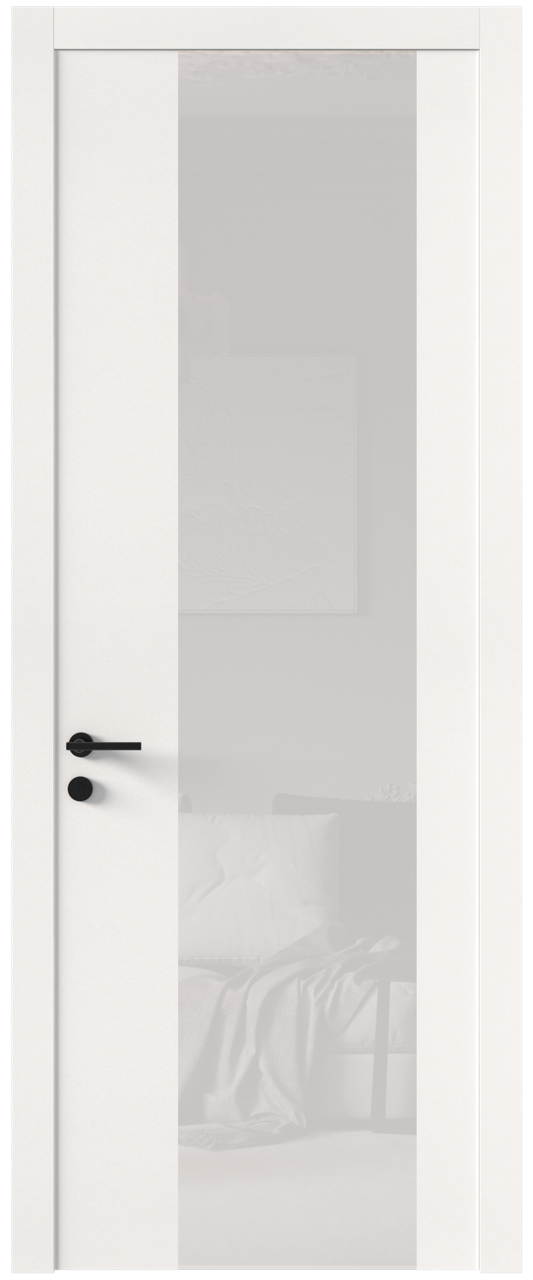 Межкомнатная дверь Tivoli Е-1, Со стеклом (ДО), цвет - Белоснежная мягкая шагрень в Новосибирске. Высокое качество от фабрики Porta prima. Доставка и установка дверей. Консультация по ☎️ 8 (495) 161-75-55